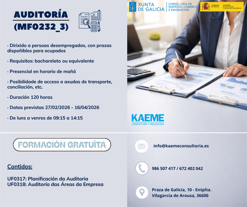 Curso PREVENCIÓN DE RIESGOS LABORALES. NIVEL BÁSICO 60 horas - Sábados 7, 14 y 28 de febrero - Vilagarcía de Arousa (PONTEVEDRA)