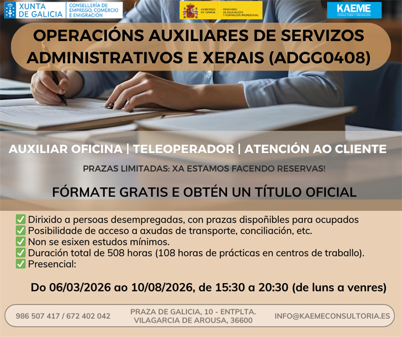 ADGG0408 OPERACIÓNS AUXILIARES DE SERVIZOS ADMINISTRATIVOS E XERAIS