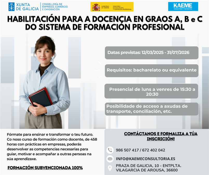 Máis información: 986 507 417 - 672 402 042 - info@kaemeconsultoria.es